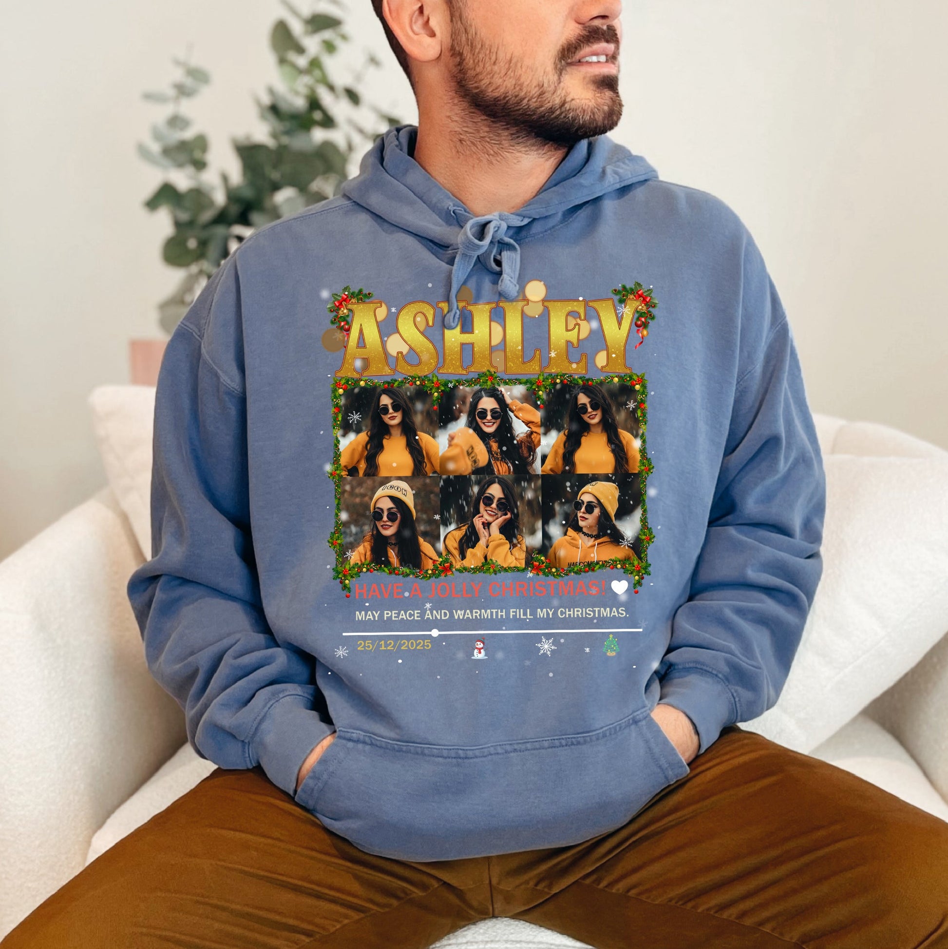 Celebrate the spirit of Christmas with our Personalized Holiday Photo T-Shirt. Upload your cherished moments and let us turn them into a stunning collage printed on ultra-soft Comfort Colors fabric. Whether it’s a family snapshot, couple memory, or your best festive selfie, this custom tee is the perfect mix of comfort, sentiment, and holiday cheer. Makes a beautiful keepsake or gift that will be loved year after year.